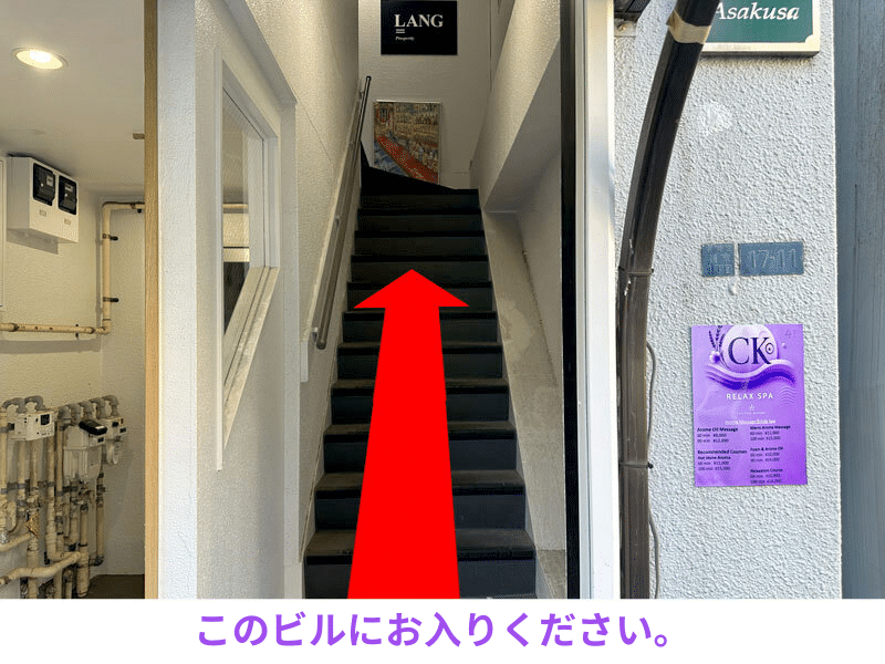 浅草・雷門のすぐ近くにある「CKリラックススパ タイ古式マッサージ 浅草店」は、旅の疲れや日々のストレスをそっと解きほぐす、やすらぎのスパです。東京メトロ浅草駅1番出口から徒歩3分。雷門からもすぐの便利な立地にあり、観光の合間やお仕事帰りにも気軽に立ち寄れるサロンとして、多くのお客様にご利用いただいています。